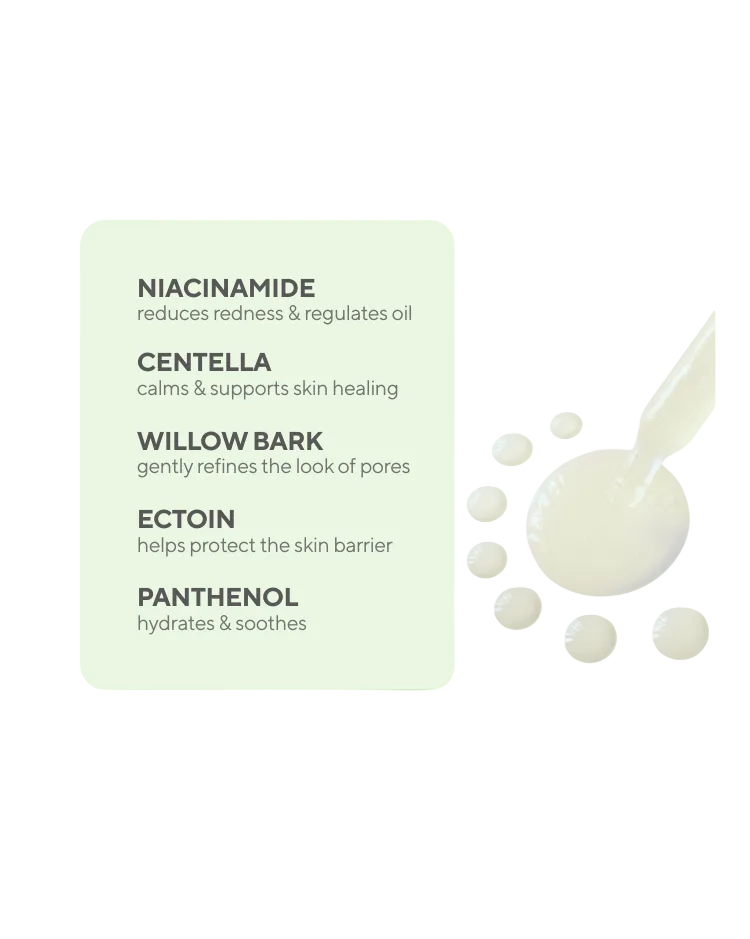 The infused actives Niacinamide, Centella and Ectoin help reduce visible redness and support your skin’s recovery.